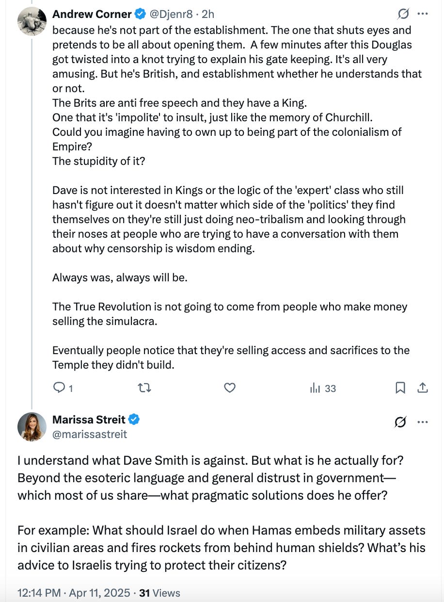 About that JRE pod Dave Smith vs Douglas Murray debate