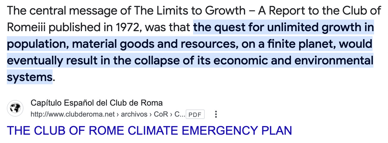 I think it’s important to note that it is these same people that are trying to terrify us into accepting the main premise for adopting agenda 2030, which is ‘climate change’, which is and always has been a thinly veiled allusion to ‘overpopulation’, and everything that goes along with it, and it has been since the Club of Rome (in partnership with MIT) first floated the idea back in their ‘Limits to Growth’ publication.