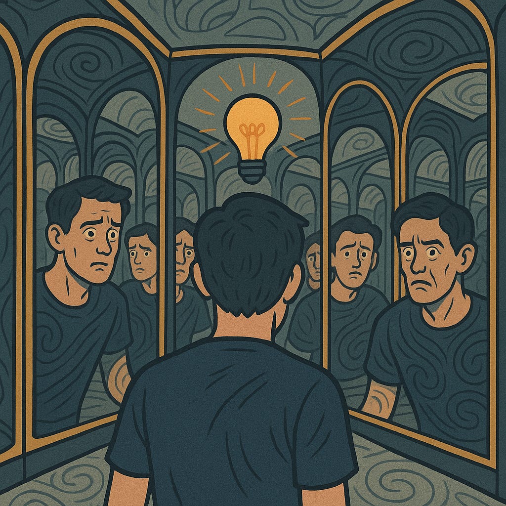 But here, the mirror fights back. It flatters. It reflects our admiration back to us. And so the risk in this second room is not error, but delay. Recognition becomes enough. Fascination replaces faith. The vertical axis is glimpsed — and then absorbed into commentary.