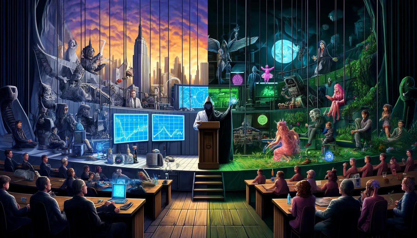 Both sides, appear to be funded by a particular World view, that just happens to push 'hermetic' principles. The kinds of ideas that were more often than not influenced by various drugs or rituals. In other words, 'magic'.