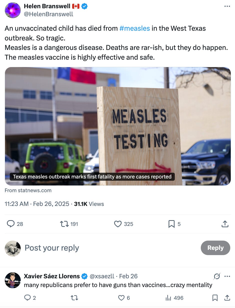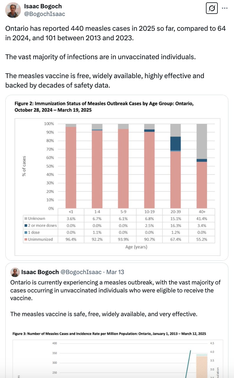 A few days ago on X, I noticed that there’s an attempt to scare parents into getting their kids the measles vaccines, suggesting that a lack of uptake is leading to more cases of measles.