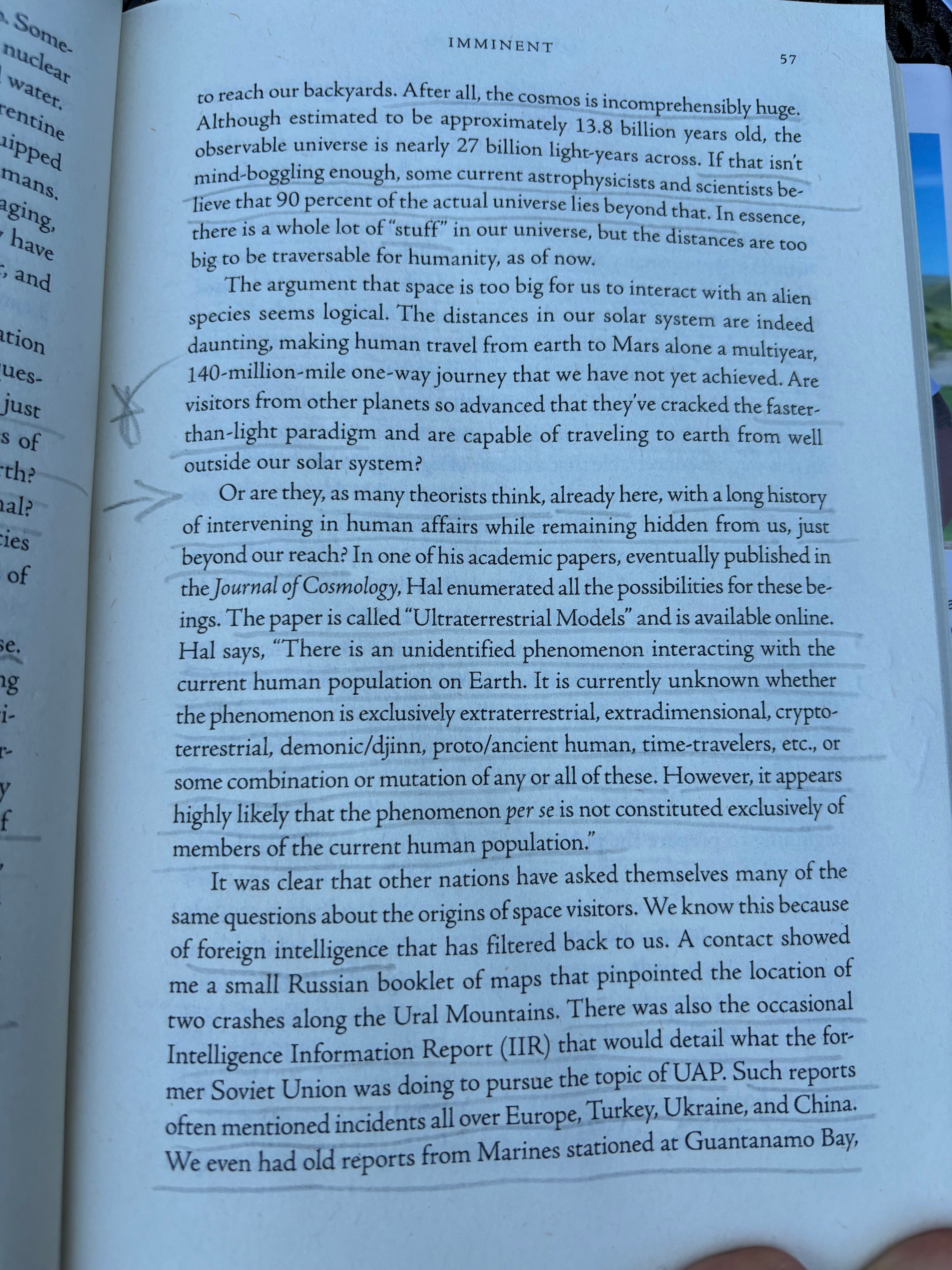 I’m currently 58 pages into Luis Elizondo’s new book called “Imminent”.