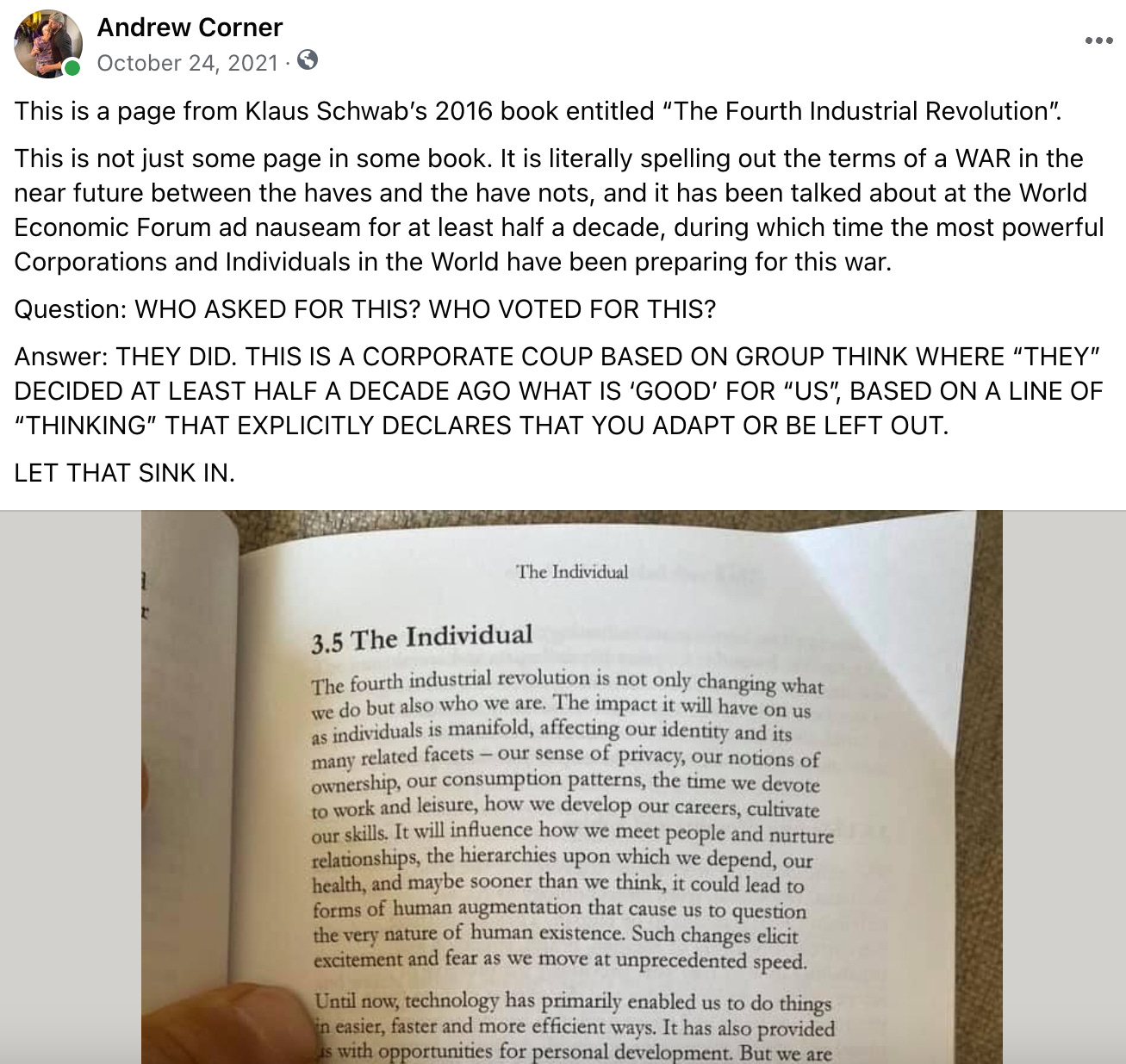 For my own part, the first thing I shared that went ‘viral’ on fakebook back in 2021 was a page from ‘The Fourth Industrial Revolution’, that explained the basics you will hear and see spelled out in the documentary.