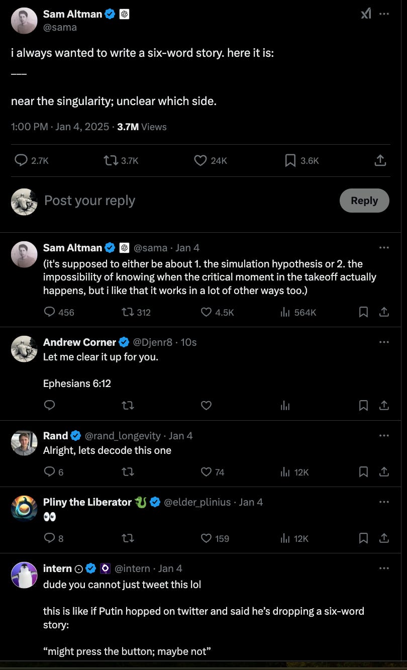But in my dream, she was working with OpenAI to help bring about the ‘Truth’, by putting out feelers into the World, to find Truth seekers. Real ones. Not the superficial variety like the tattooed guy who showboat and have taken the spotlight for far too long, but the real Truth, seekers.