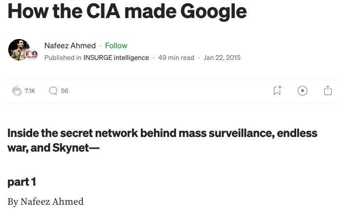 We can of course speculate, but there’s been plenty of people pointing out that Google got it’s start through In-Q-tel, an extension of United States Intelligence agencies who are working very hard to convince us they are Not running this whole thing, that they have been running, since early on in 2020, when former CIA deputy director and former Deputy National Security advisor Avril Haines helped to craft how the WEF ‘stakeholder partners’, would run a coup on the World, you know, if they ever ‘Had to’ or something, and how they would run a new program of censorship that involved ‘flooding the information zone’. Now would be a good time for these same partners to write an article saying that what I’m saying isn’t really true because (enter technicality BS here). Anyways, it’s been done to death, I’m not here to retell the story of Event 201.