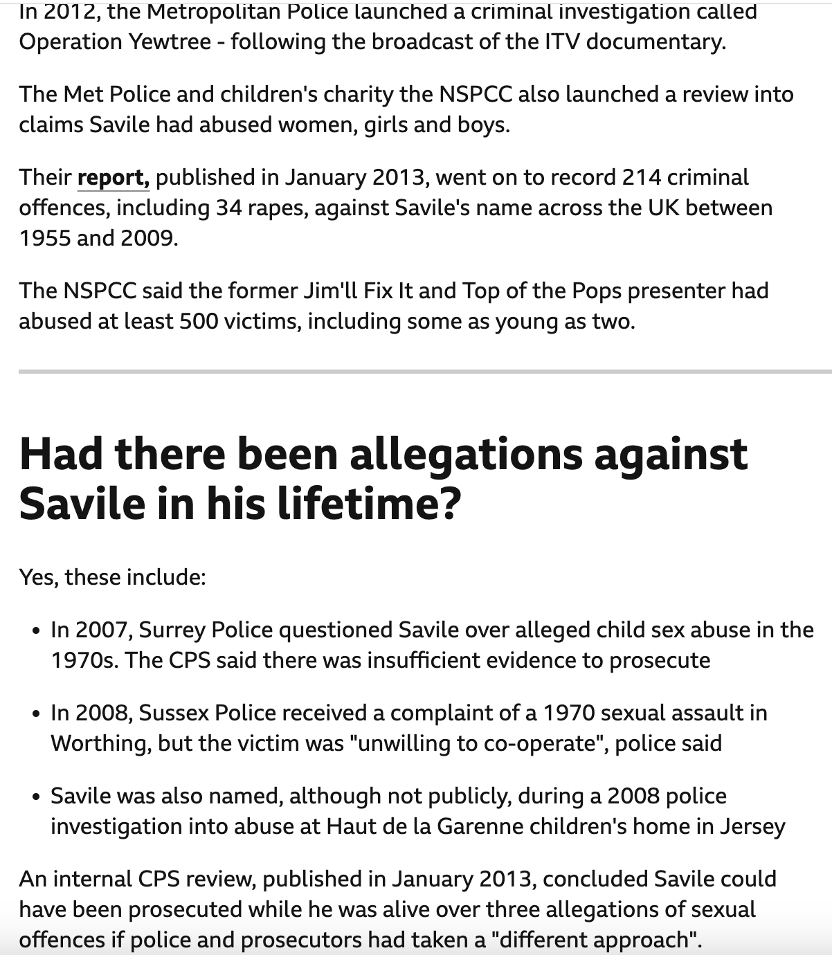 Yikes. So basically someone had to make an entire documentary, and it only got aired after Savile died, and the case opened due to public outcry.