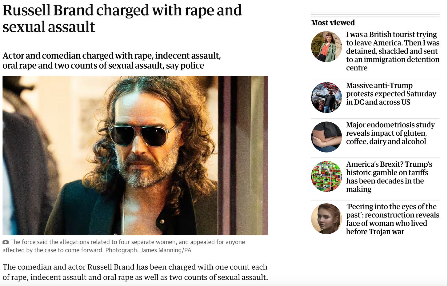 In the case of our friend and recently minted Christian Russel Brand, it’s important to look at the timing of it all. This isn’t about justice, it’s about destroying the public image of a man who’s been calling out the UK on the innumerable lies they’ve been telling since March of 2020, the beginning of the wildly superficial ‘Covid’ pandemic.
