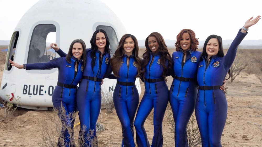 Let’s talk about what just happened when a group of celebrities — led by Katy Perry, Gail King, and Lauren Sánchez — took a quick 11-minute Blue Origin trip to “space,” and declared it not only a feminist milestone, but a scientific triumph.