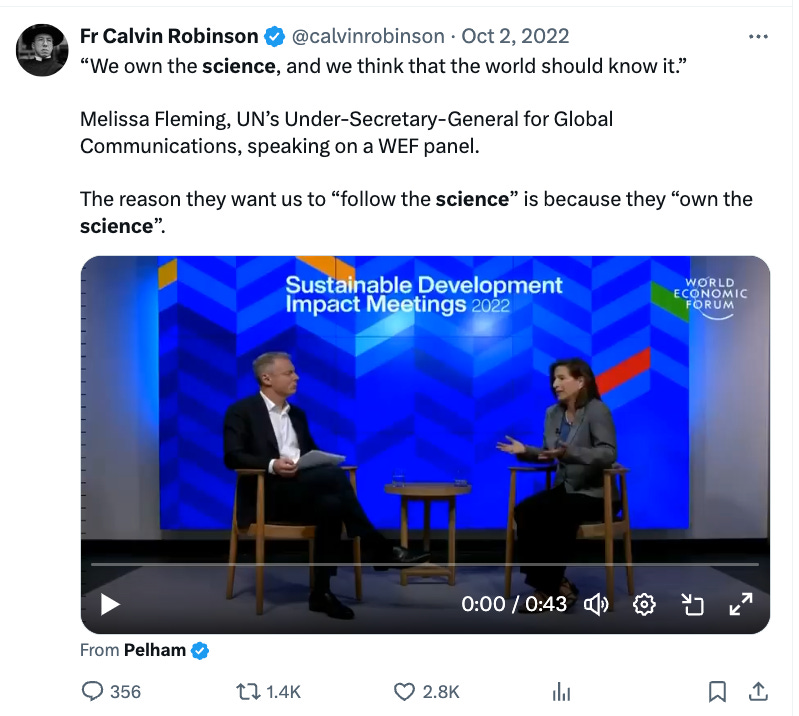 So that’s them. The people that own the science. But what ‘science™️’ do they own, that they endorse, with a subtle kind of ‘or else’, for consumption and adoption by everyone on the Planet?