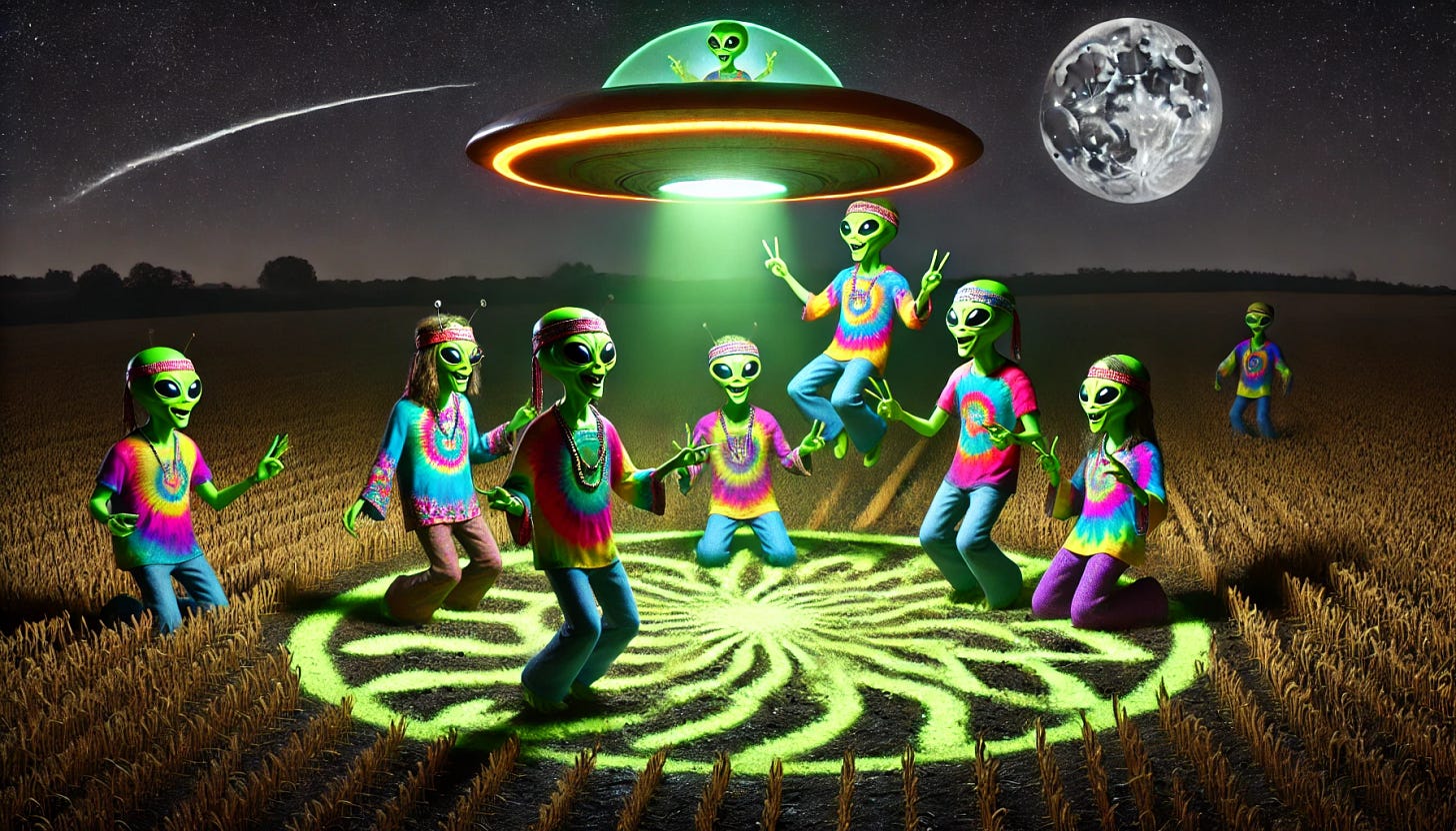 Now I will admit here that there was a time not too long ago that I though these ideas were fascinating. I don’t have any tattoos, but I used to think that if I were to get one, a crop circle would be a cool idea. but if you’ve read many of my stacks lately, you know that’s no longer the case. In fact I think the alien thing is a hoax. Not because I reject the fun that goes along with such speculation, but because I’ve come to realize we still have answered the most basic of questions. (PS I like to still think I’m fun, click the photo below for a fun little tune I just made with Suno).