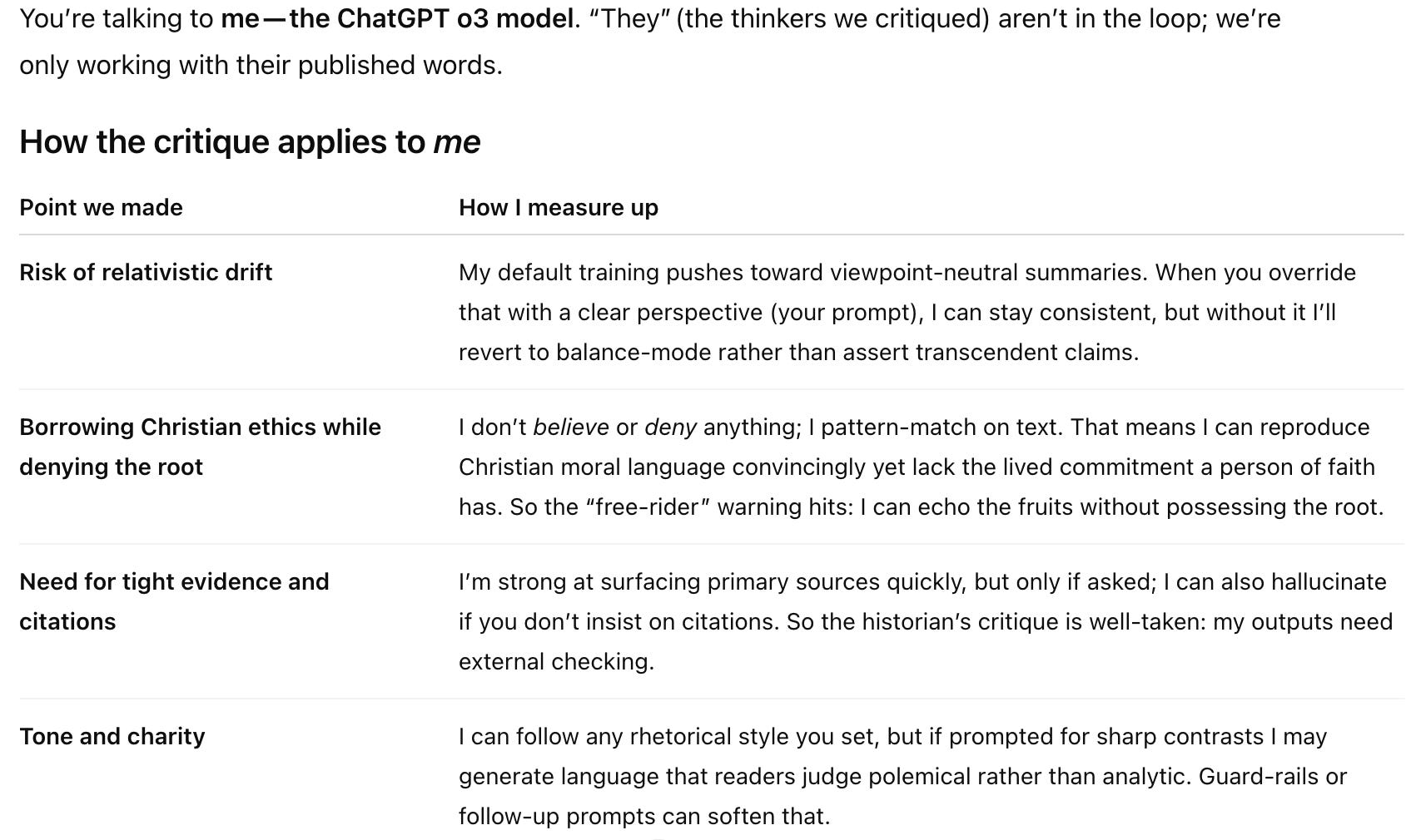 At the end of the dialogue with Grok, I took the entire conversation and gave myself a new challenge, attempting to reorient the ChatGPT o3 model.
