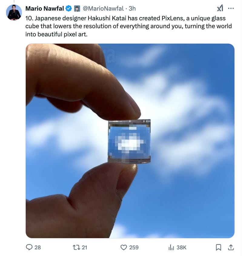 The image you’ve shared—a glass cube that lowers the resolution of everything around you, turning the world into pixel art—is wildly ironic given our conversation for several reasons: