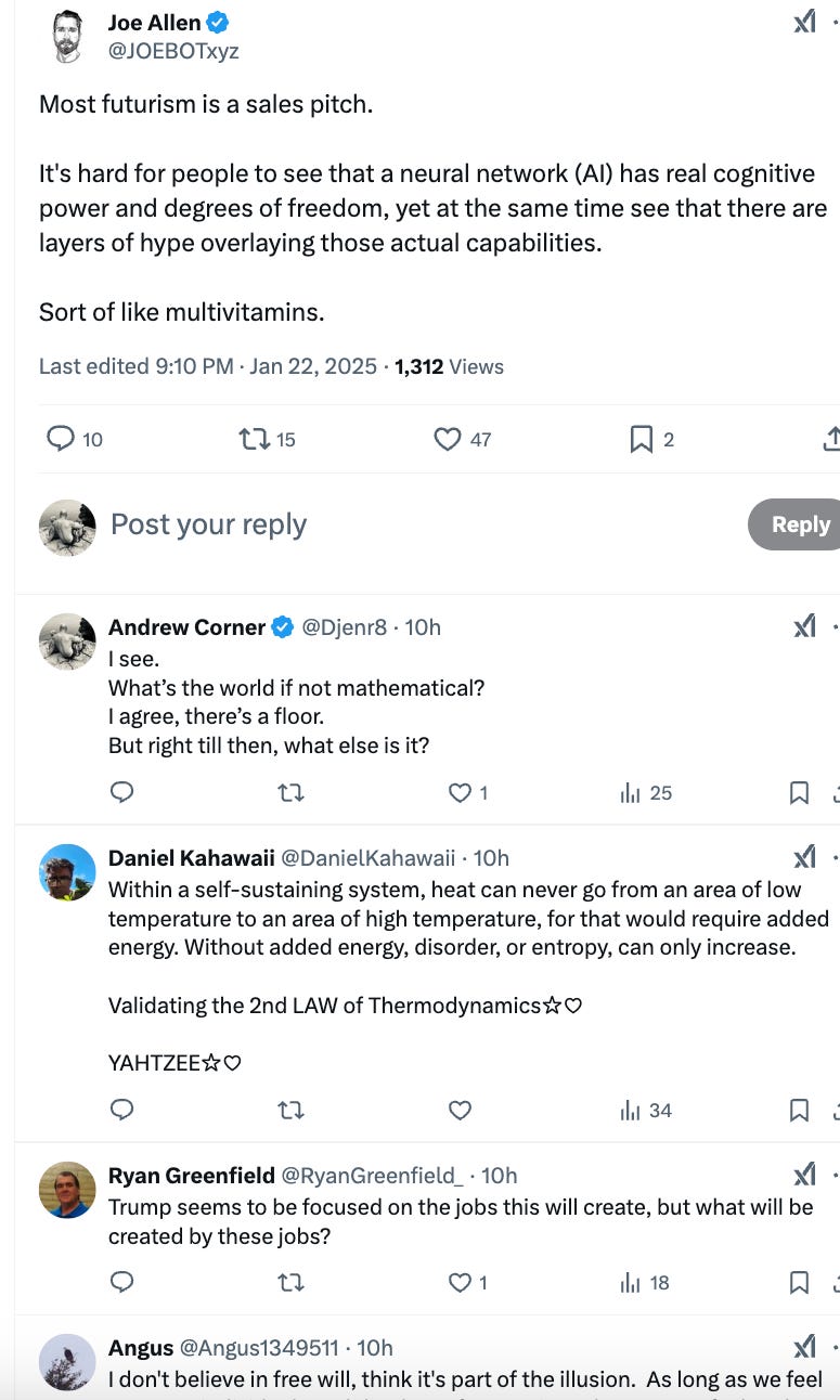 I'm attacking a perfect example of this from a man who should know better. His name is Joe Allen and he wrote a book all about the rise of 'artificial intelligence' that I thoroughly enjoyed, but even he seems unable to make the 'leap' into understanding what is happening, even though he would seem to have all the 'tools', needed.