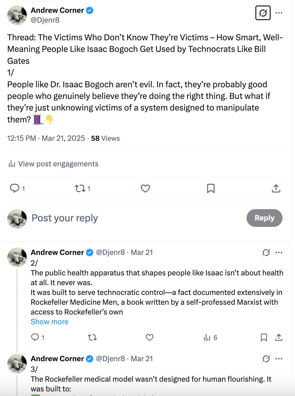 The Public Health Apparatus Was Born of Industrial, Not Humanitarian, Interests As documented in Rockefeller Medicine Men (written by a Marxist historian with access to original documents), the modern medical system was shaped by oil and banking interests seeking to manage labor, not promote wellness. It was designed to eliminate competition (homeopathy, naturopathy) and centralize power around allopathic, pharmaceutical models.