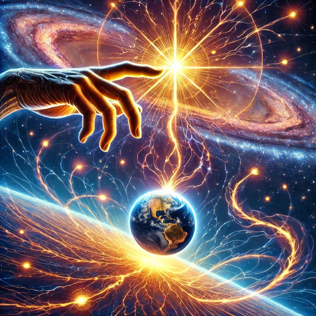 Here’s the updated cover page design, incorporating the concept of an "electric" universe while emphasizing God as the source of all creation and moral clarity. This version aligns with the latest theoretical understanding of the cosmos, with divine light interacting with electric currents, guiding and protecting humanity. I hope this version is clearer and resonates with your vision!