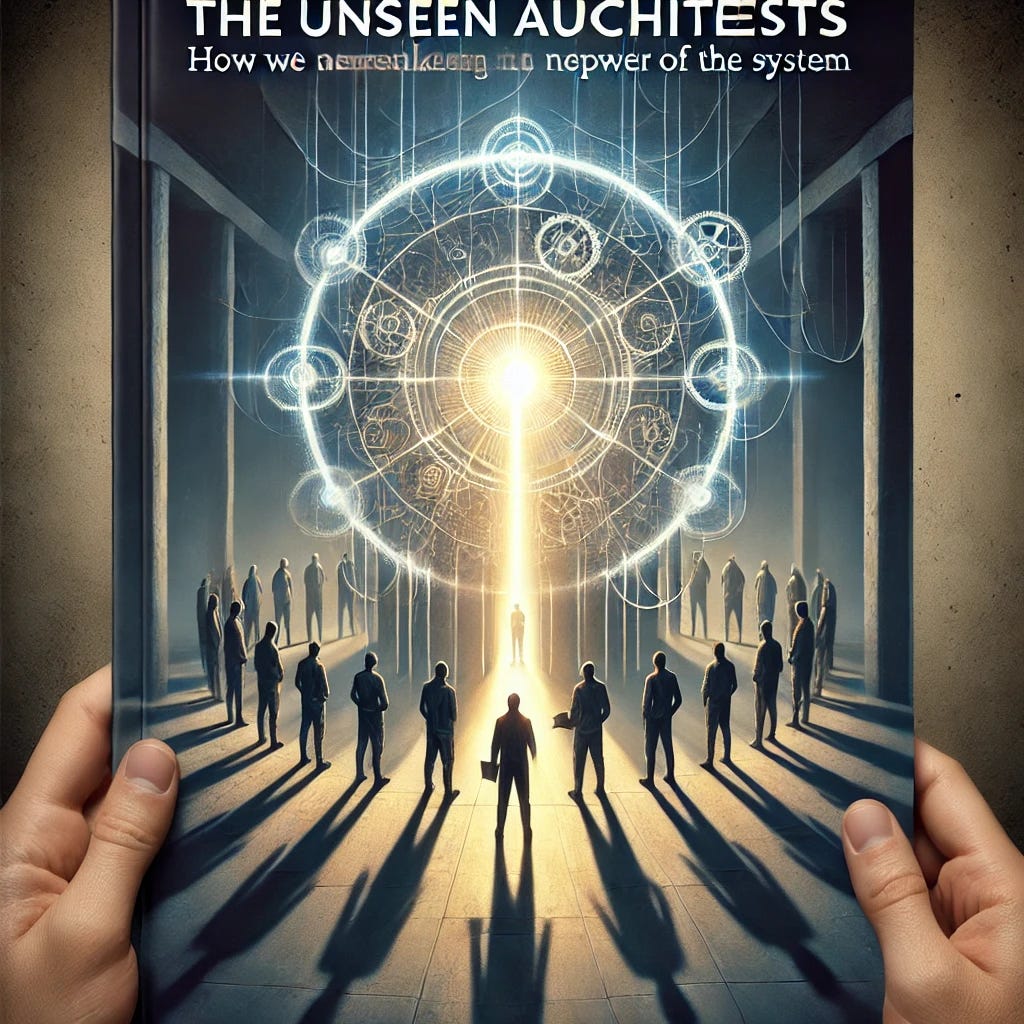 Title: At the top, in a thought-provoking and reflective font: "The Unseen Architects: How We Hold Up the World We Critique."