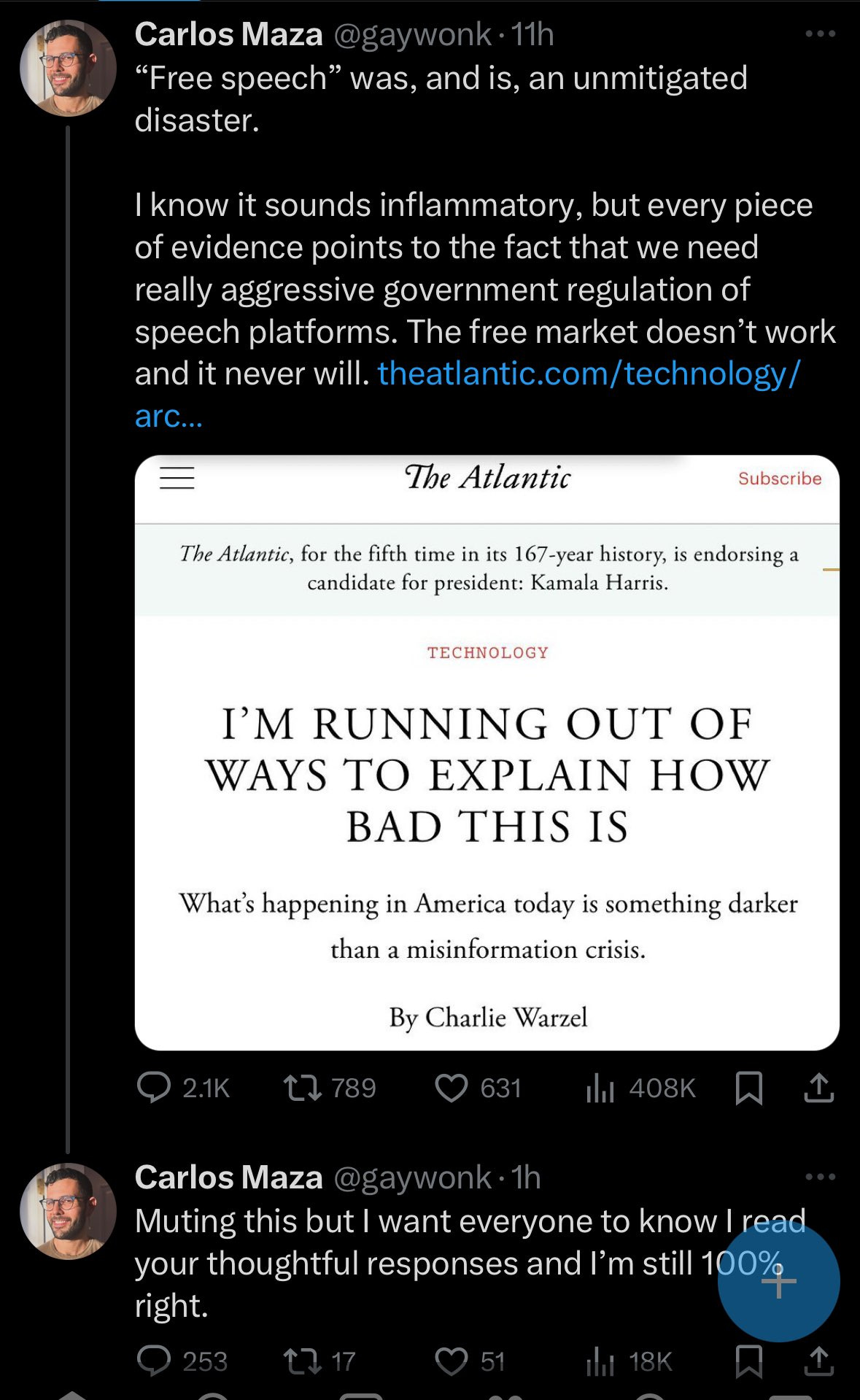 Here’s another person who thinks people disagreeing with this group is so ‘dangerous’, it should probably be regulated and censored in real time, with AI.