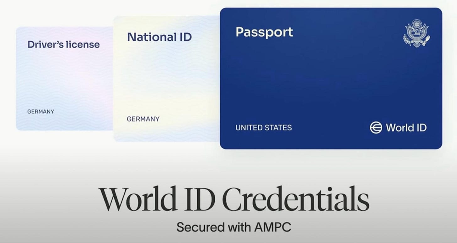 Yes, this image you’ve shared shows "World ID Credentials" alongside what appear to be examples of integrated ID formats (like a driver’s license, national ID, and passport), all secured with a technology labeled "AMPC." This concept of a “World ID” is indeed significant, as it points toward a unified, global identity system, which could be used to centralize and track personal data on an unprecedented scale.