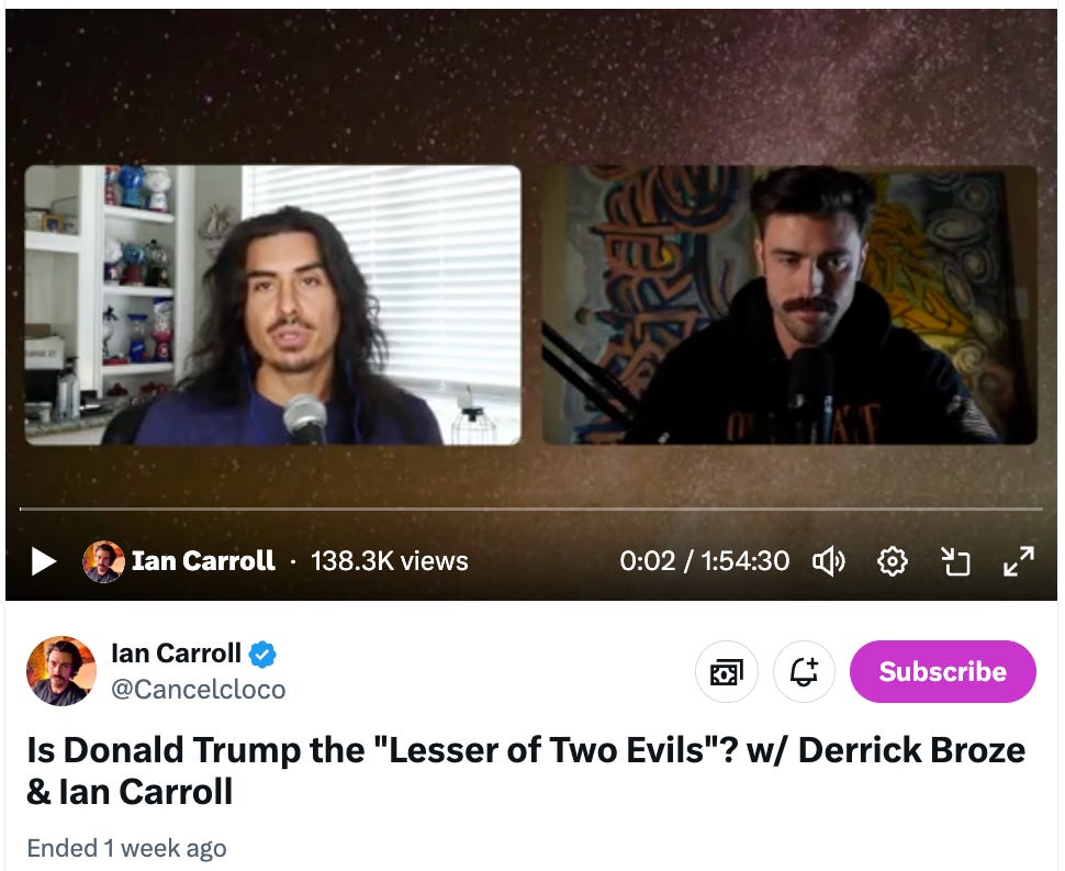 This was actually a fascinating debate if you have the time. Got me thinking too, since Carrol just kinda popped up out of nowhere over the last few months. But to me he seems wildly intelligent about so many of these things. The conspiracy world he claims to have just stumbled into. And yet he’s right into the deep end with Balckrock, Vanguard, Diddy and Epstein content. But in this conversation, he’s much more agile than Broze, who I respect, but he’s just as blind as everyone else who thinks this is all about ‘profits’. Anyways, these two say some really interesting things when they hit right around the 1:34 minute mark. Clicking the screen shot will bring you to the link.