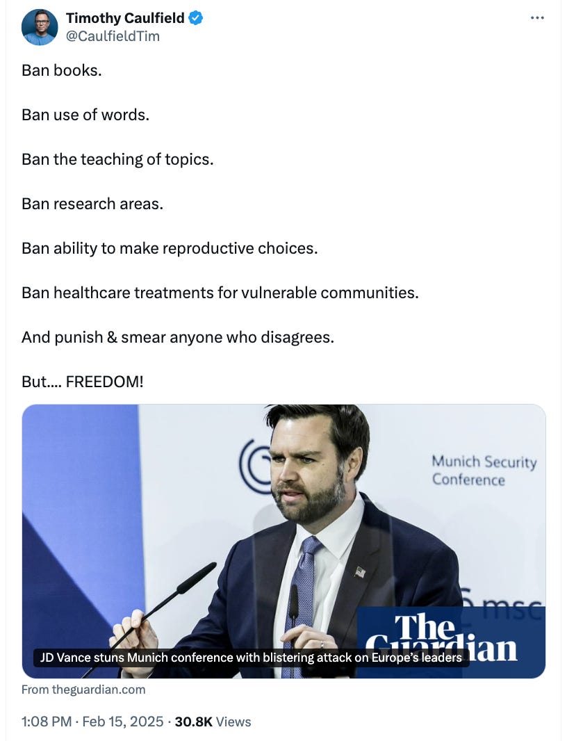 One, this morning I woke up to find the ‘science’ ‘purveyor’ Timothy Caulfield sharing an article from the Guardian this was just stunning to me, both because of Tim’s take on the article, and the article itself. It seems as if some people are really losing touch with reality. Yes, I hear myself, but at least I acknowledge it Lol. Tim however seems to be living in an alternate reality. You can click the photo for the link.